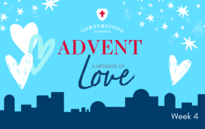 There are so many wonderful examples of how we show love to one another. Family members who lend a helpful hand or give a hug at just the right moment. Teachers who not only help their students reach academic goals but also help cultivate servant hearts. Friends who reach out when life feels hard. At Cornerstone, we have witnessed countless ways our students share their love with classmates and the community. Just last week, our middle school students prepared 25 table top Christmas trees to be delivered to local nursing homes. They wanted to be sure that the recipients would feel a little extra love at Christmastime.